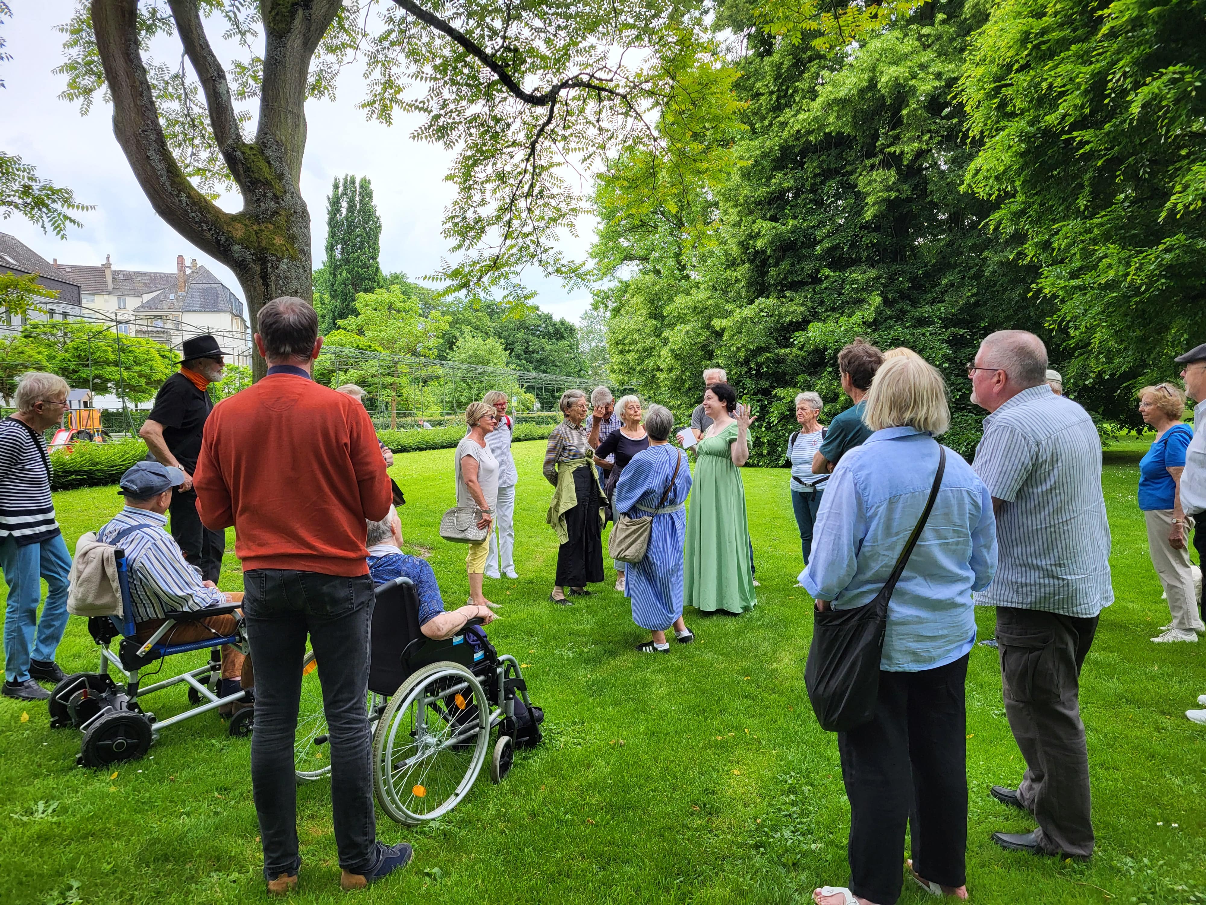 In diesem Jahr führte die Frankfurter Mundart Schauspielerin Katharina Schaaf unsere Gäste 2x als Goethe's Muse, Marianne von Willemer, durch den Brentano Park. (29.Juni und 27.Juli) Beide Führungen waren gut besucht, und die Teilnehmer lernten viel Interessantes über die besondere Beziehung der beiden und die exotischen Bäume im Park.