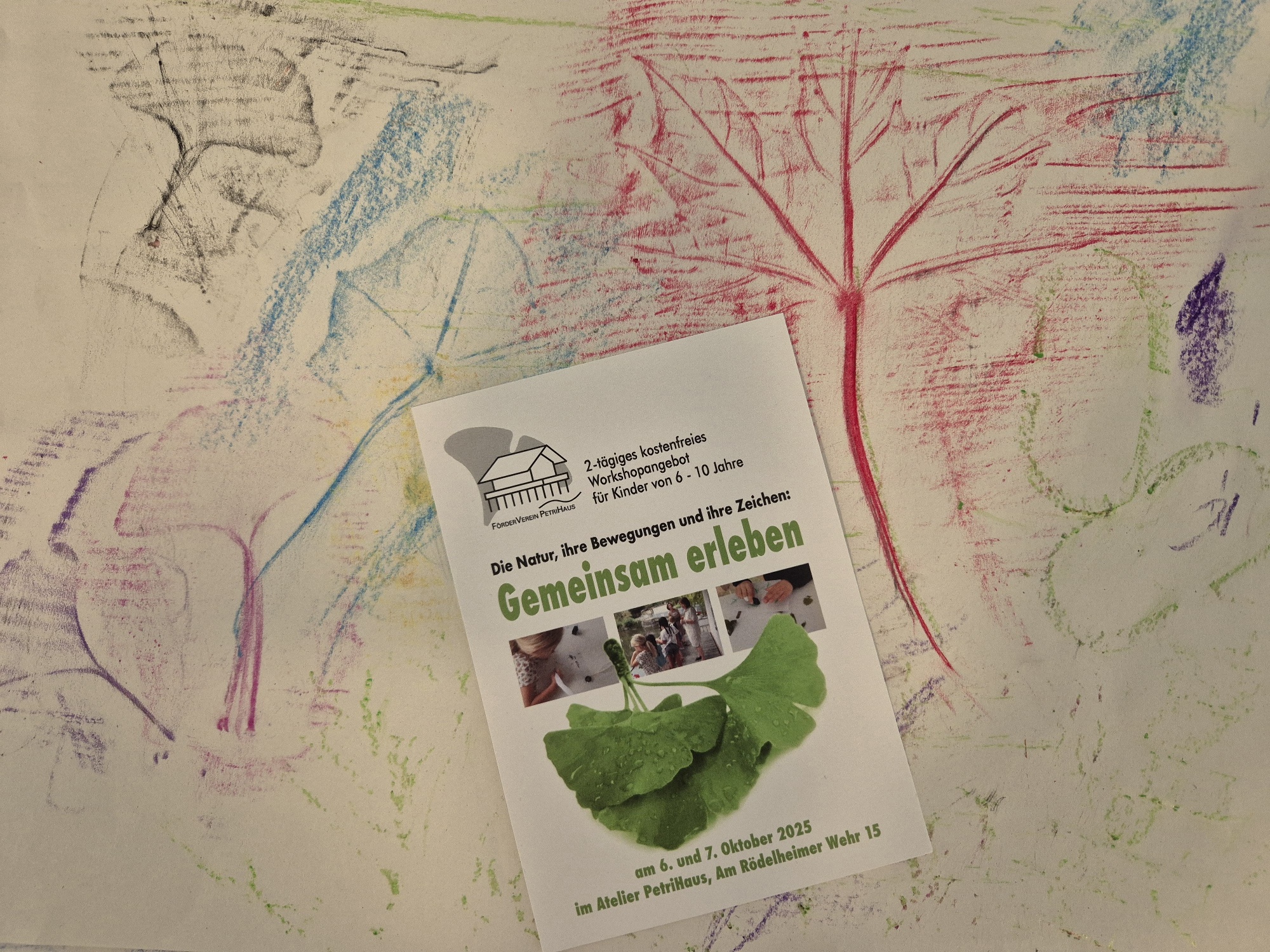 Zu Beginn der Herbstferien, am 6. und 7. Oktober 2025, gab es wieder ein kostenfreies Angebot für einen zweitägigen kreativen Workshop für Kinder, der von dankbaren Eltern gerne angenommen wurde. Annina Schubert, unsere erfahrene Museums - und Erlebnispädagogin, leitete die kleine, feine Gruppe dazu an, den Herbst in der Natur intensiv wahrzunehmen. Dazu bietet sich das wunderschöne Ambiente rund um das Petrihaus natürlich besonders an. Gingko-Blätter, Kastanien und vieles mehr wurde mit allen Sinnen erforscht, gesammelt und anschließend im Atelier PetriHaus mit verschiedenen künstlerischen Techniken verarbeitet. Und auch diesmal waren die Besuche des Museums, also der Lebenswelt der Familie Brentano und ihrer Gäste beim Genuss ihrer Freizeit, sowie das Schreiben und Zeichnen mit dem Gänsekiel Höhepunkte des Erlebens der begeisterten Kinder im Alter von sieben bis neun Jahren. Für deren Sicherheit innen und außen sowie liebevolle, kleine Verpflegung sorgten Christine Mostert, Bettina Schumacher und weitere Ehrenamtliche.