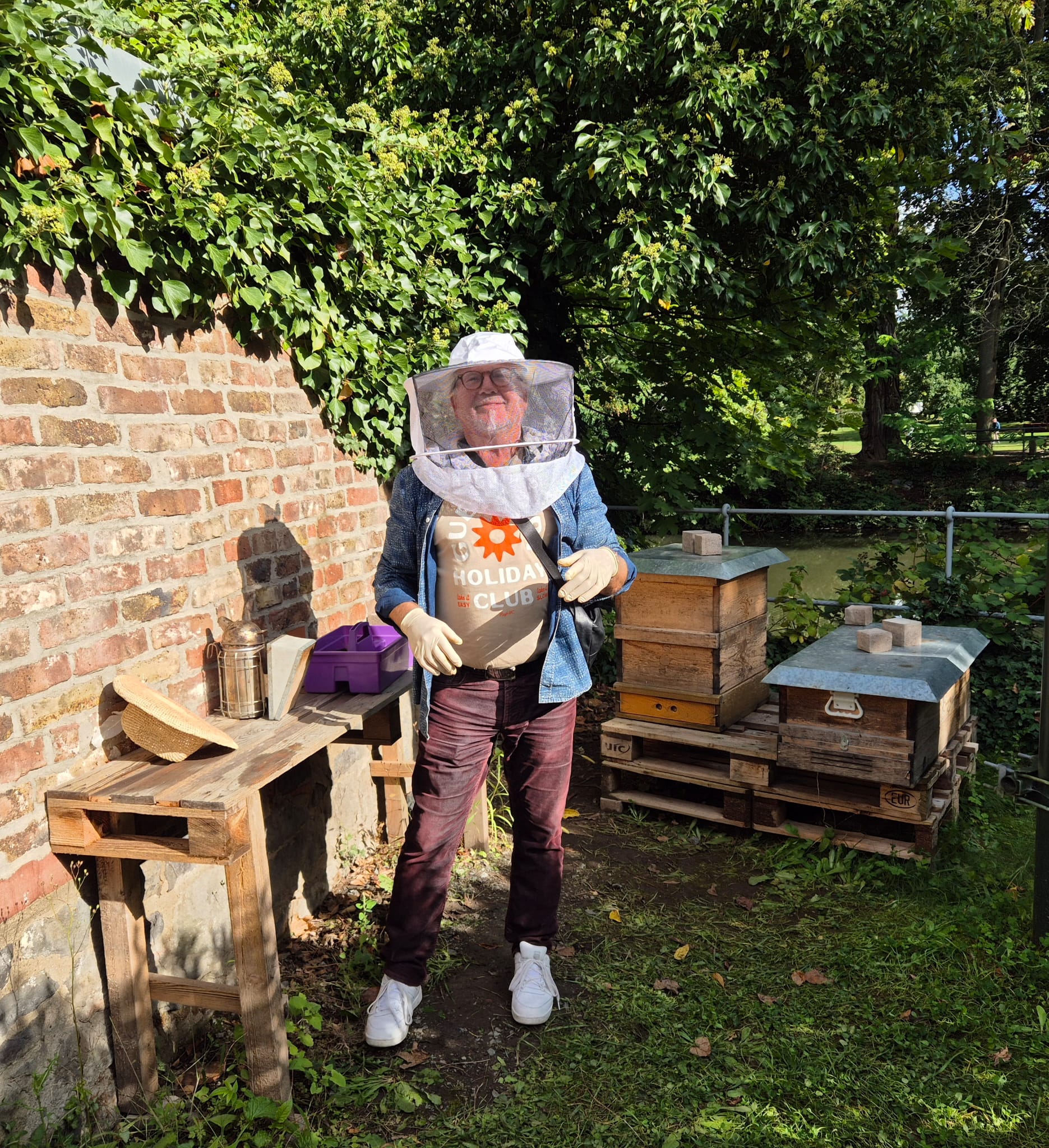Das hätte Georg Brentanos Herz erfreut als am 16. Juli der erste Honigder jungen Bienenvölker geschleudert wurde. Unser Imker, Peter Kühnel aus Oestrich Winkel, beglückte uns bereits mit einem Bienenstock im Fenster des Petrihauses und zwei weiteren Stöcken an der Mauer hinter einer Hecke im Gartengelände sowie mit einem Einführungsvortrag zum Verständnis der Bienen und der Imkerei. Inzwischen sind aus den ursprünglich zwei Völkchen ohne Königin vier Völker mit Königinnen geworden. Was für eine Freude!